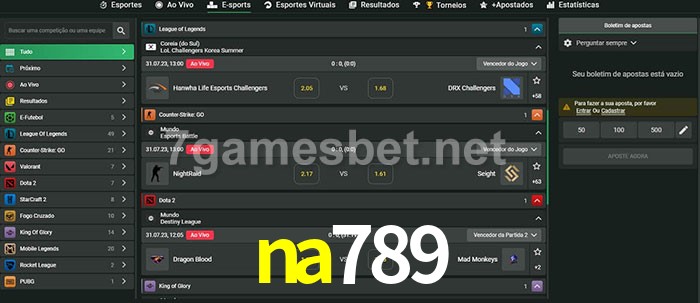 O na789 oferece uma grande seleção de opções de apostas em e-sports com probabilidades competitivas